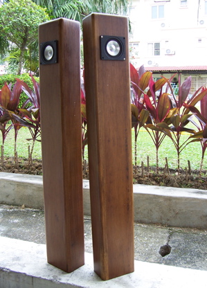 Due to the narrow baffle, could use a single solid wood plank here. Wood used here is Resak, very hard, very strong and very durable.